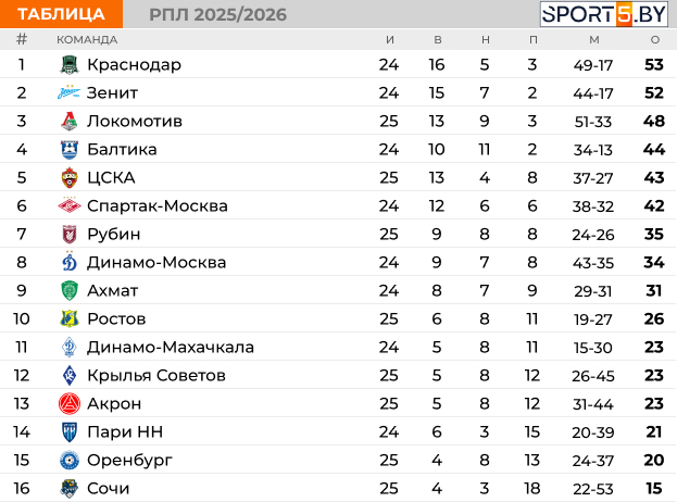 Таблица РПЛ на данный момент: