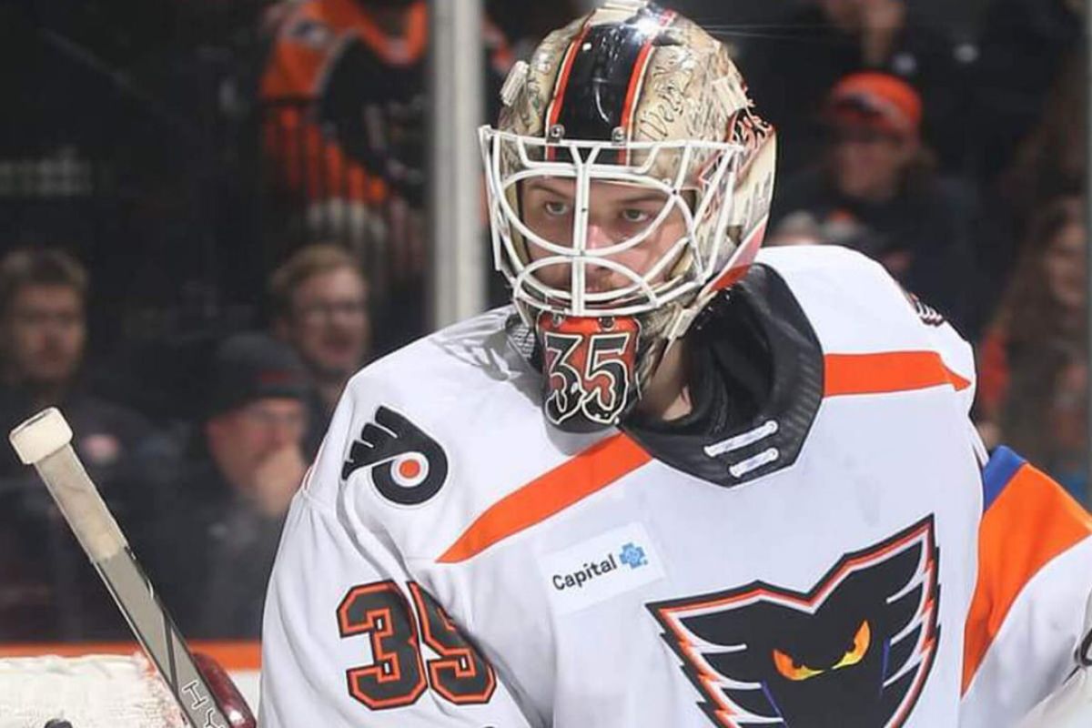 Белорусский голкипер фарм-клуба "Филадельфии" Алексей Колосов вернулся из основной команды и защищал ворота в этом матче.