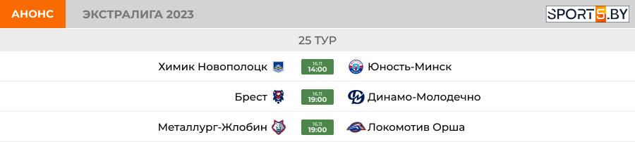 Сегодня в экстралиге пройдут три поединка. "Химик" в Новополоцке примет минскую "Юность", "Брест" дома сыграет с "Динамо-Молодечно", жлобинский "Металлург" сразится с оршанским "Локомотивом".