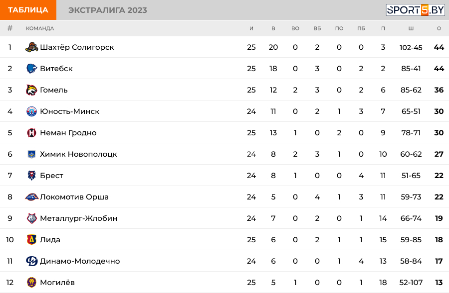 Турнирная таблица экстралиги на данный момент выглядит следующим образом: