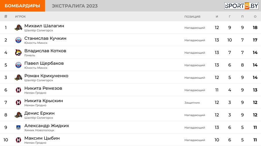 В споре бомбардиров Михаил Шалагин из "Шахтёра" имеет возможность оторваться от Станислава Кучкина из "Юности".