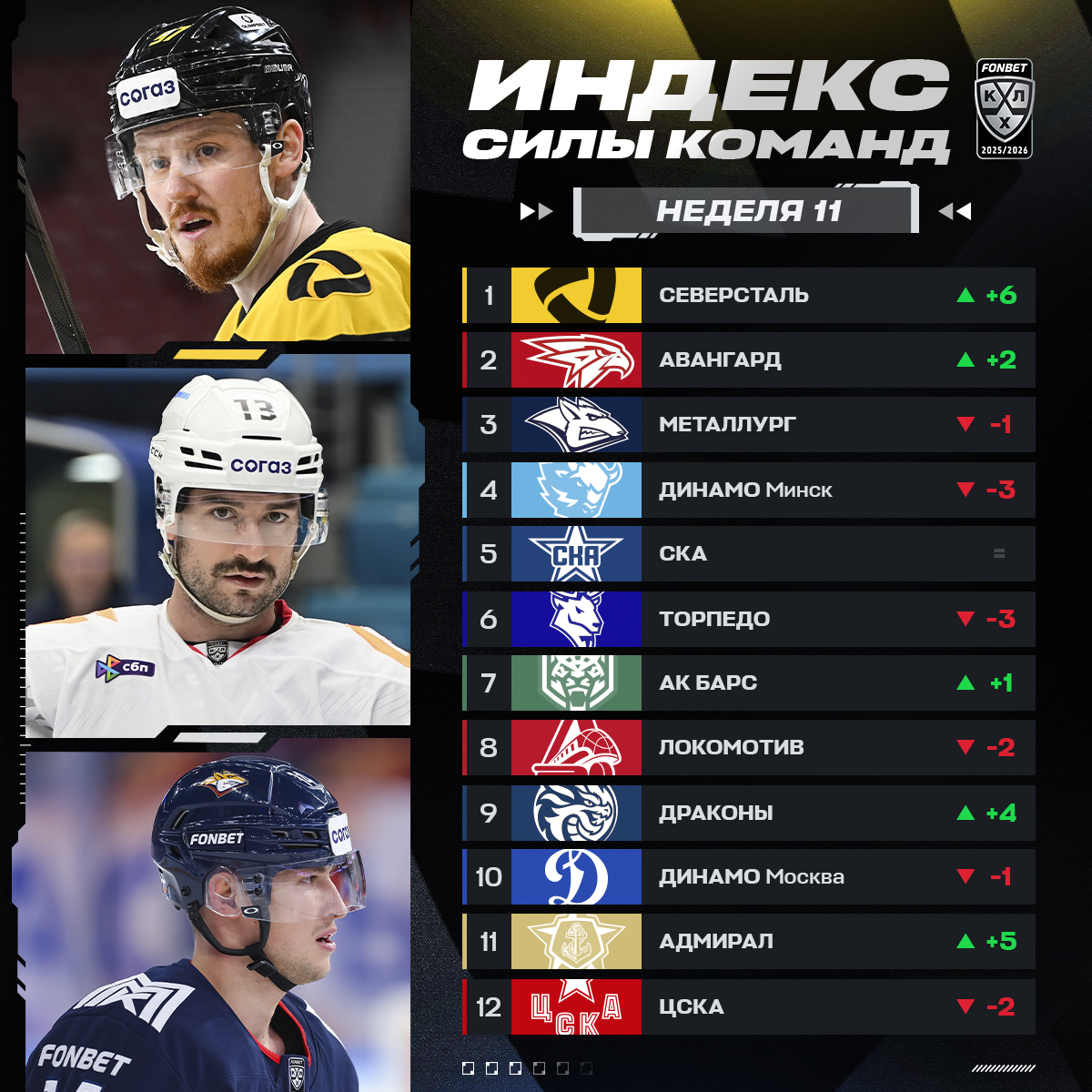 KHL.ru опубликовала рейтинг самых "горячих" команд по результатам десятой игровой недели сезона 2025/2026 Фонбет КХЛ.