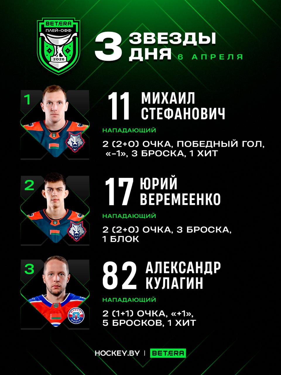 Редакция Hockey.by назвала трёх звёзд встречи: