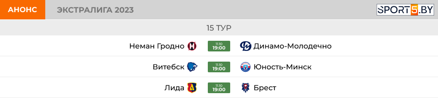 Сегодня нас ожидает три поединка, которые смогут прояснить ситуацию в верхней части таблице. "Юность" попробует взять реванш у "Витебска", Лида" — Брест", а "Неман" примет "Динамо" из Молодечно.