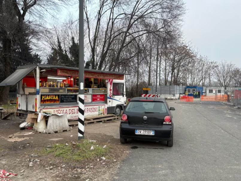 Арена расположена в переходном районе Санта-Джулия, где новостройки соседствуют с промзонами и старыми зданиями с граффити, в том числе футбольной символикой, связанной скорее с "Наполи", чем с "Миланом".