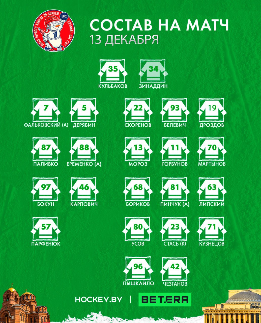 Сборная Беларуси проведёт свой финальный матч на Кубке Первого канала в Новосибирске против команды "Россия 25".