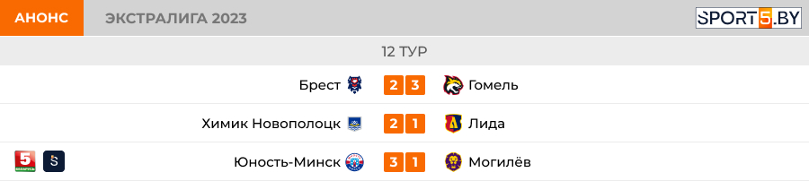 Сегодня тремя матчами продолжается борьба в рамках экстралиги. "Брест" принимает "Гомель", "Химик" дома сыграет с "Лидой", "Юность" встретится с "Могилёвом".