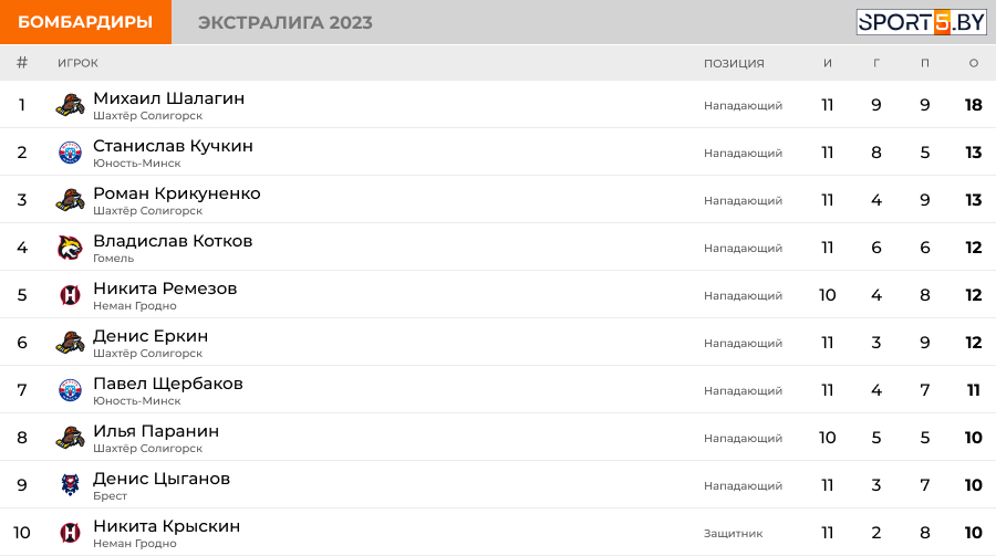 Также вашему внимаю рейтинг бомбардиров: