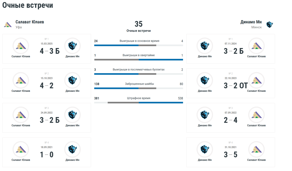 Команды провели 35 поединков и минчане выиграли только семь из них.