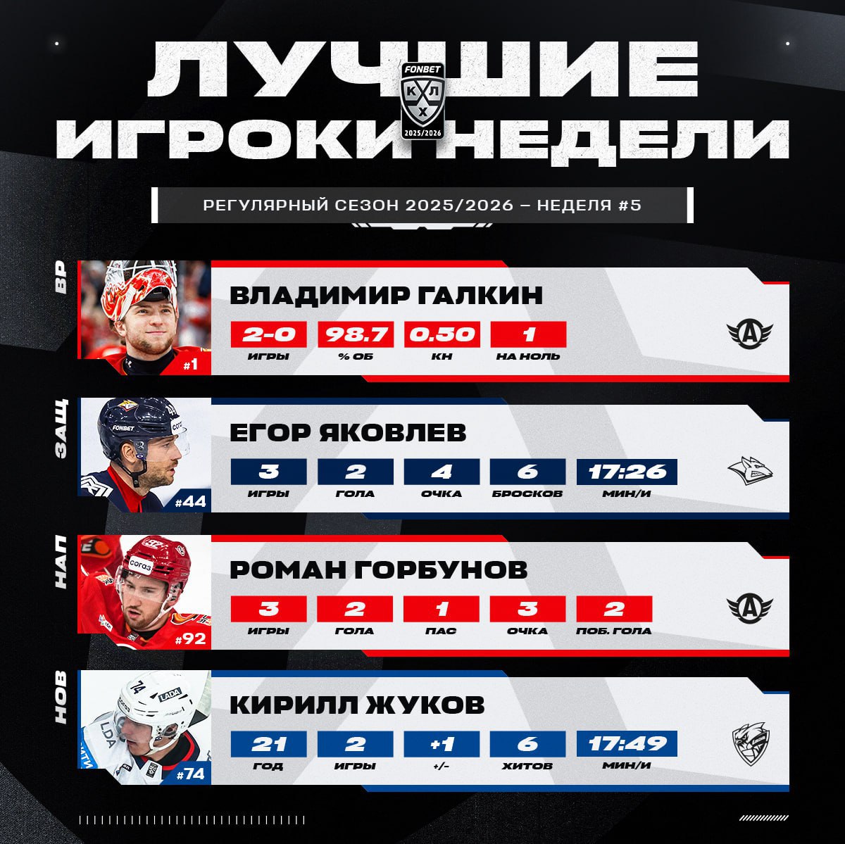 Белорусский форвард Роман Горбунов признан лучшим нападающим недели КХЛ.