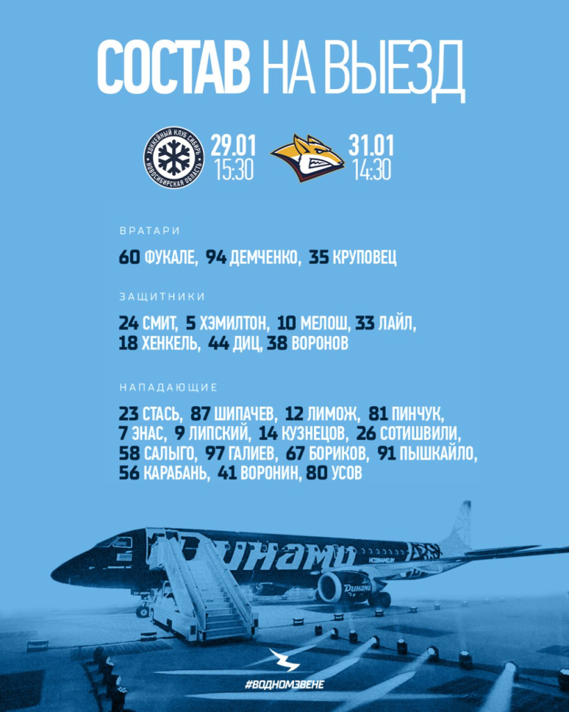 На матчи с "Сибирью" и "Металлургом" отправились 25 хоккеистов: