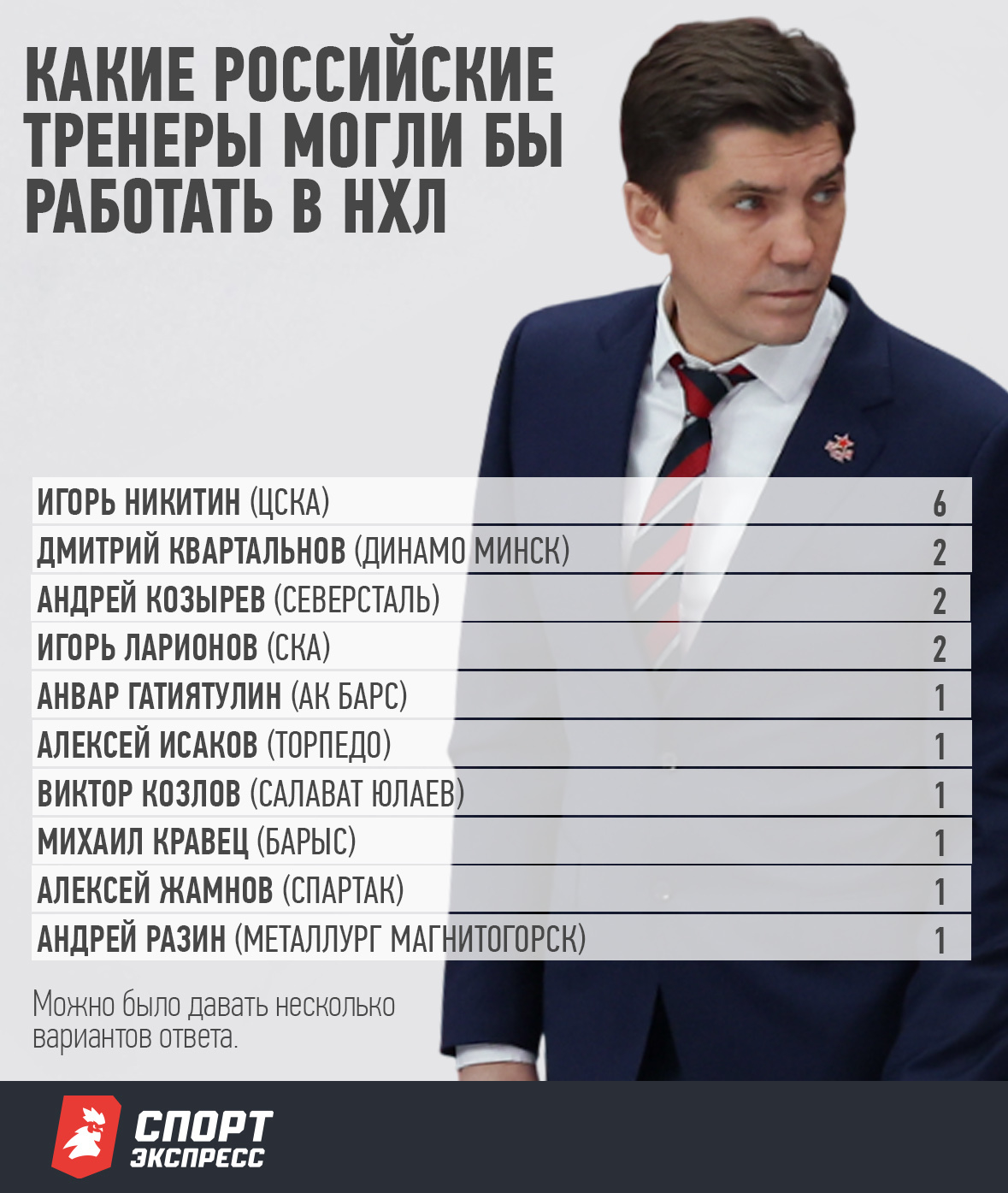 Руководители клубов КХЛ ответили на вопрос о том, кто из российских тренеров мог быть работать в НХЛ.