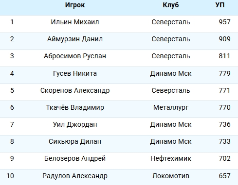 Белорусский нападающий Александр Скоренов расположился на пятой строчке этого топа.