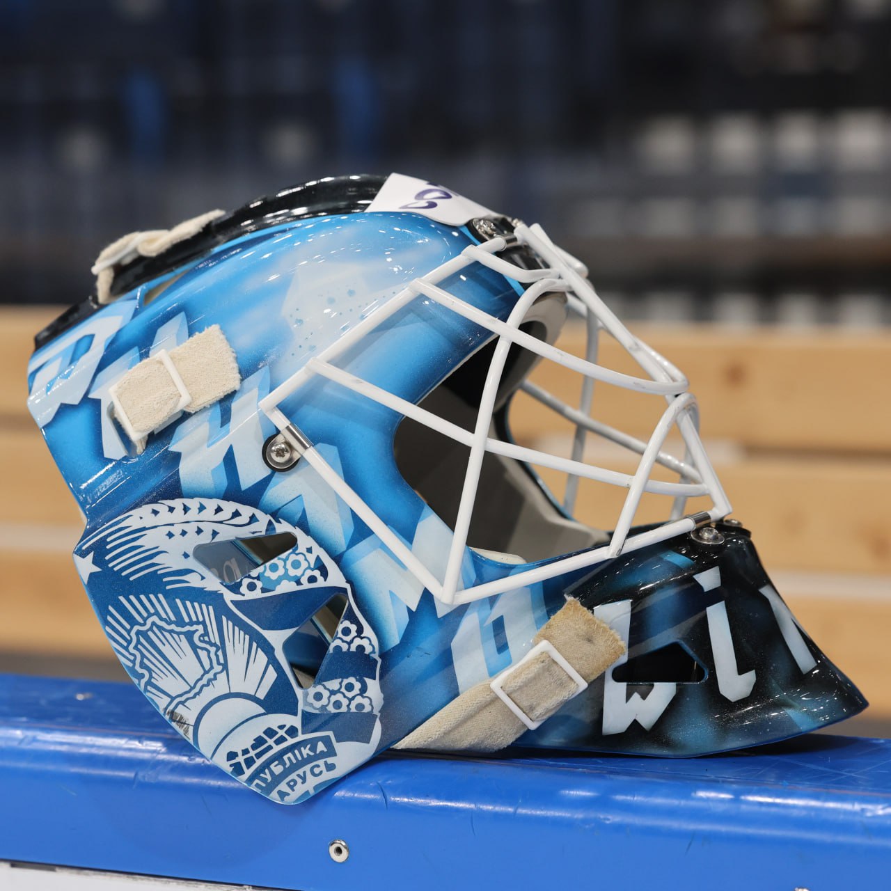 Голкипер минского "Динамо" Антон Круповец показал свой новый шлем.