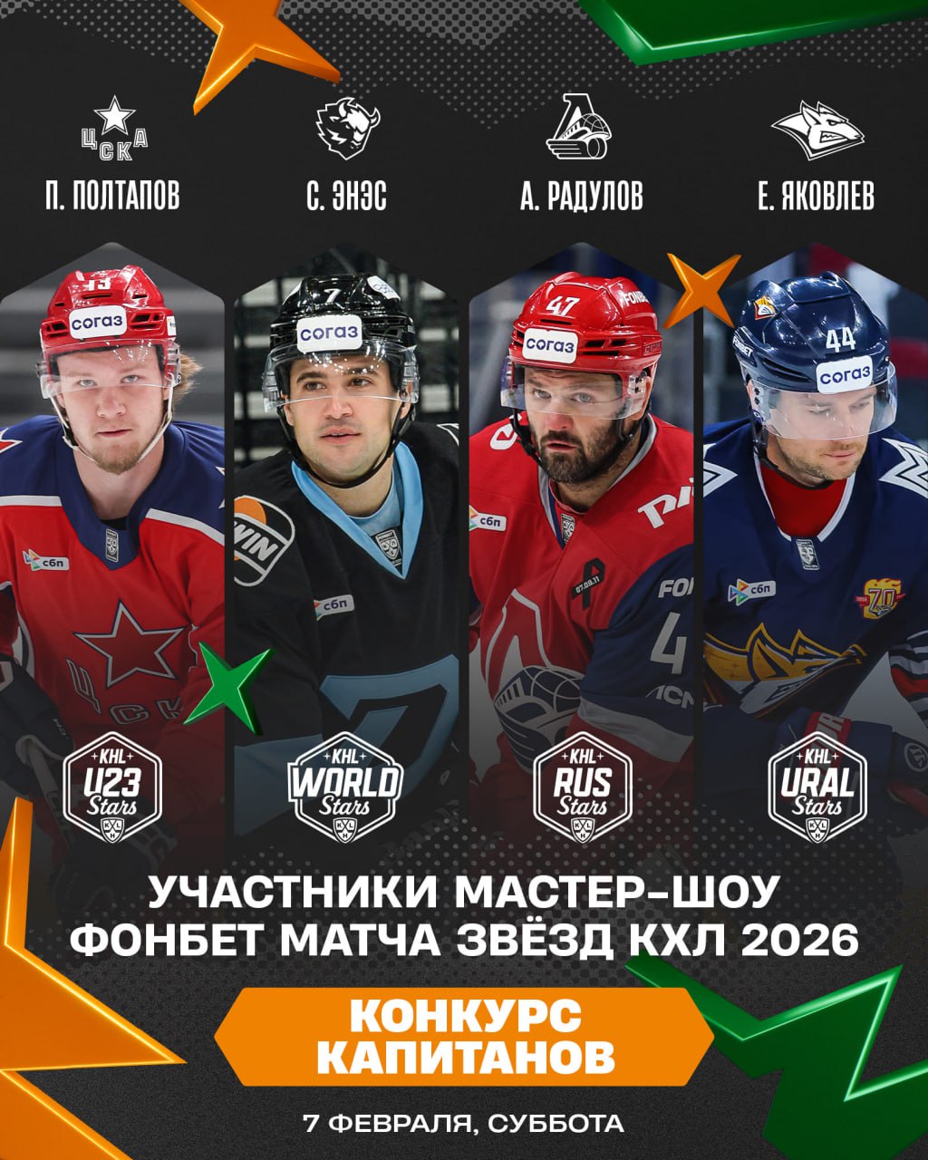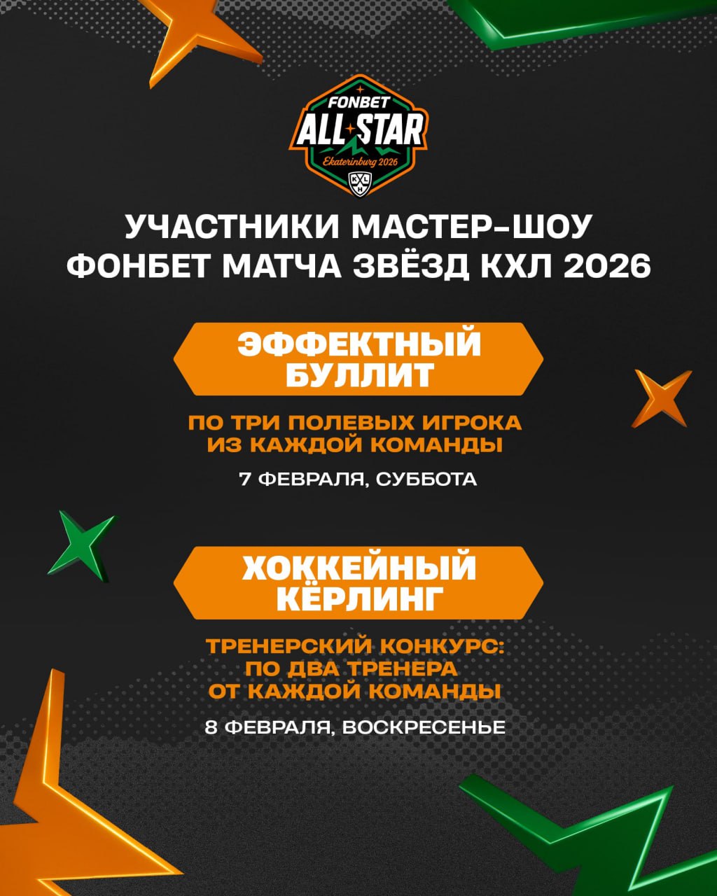 Матч Звезд КХЛ-2026 пройдет 7 и 8 февраля.