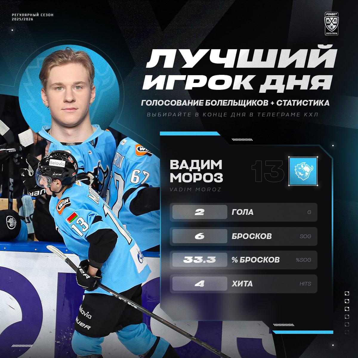 30 октября "зубры" на "Минск-Арене" обыграли "Амур" (6:2). Мороз оформил дубль в этом матче.