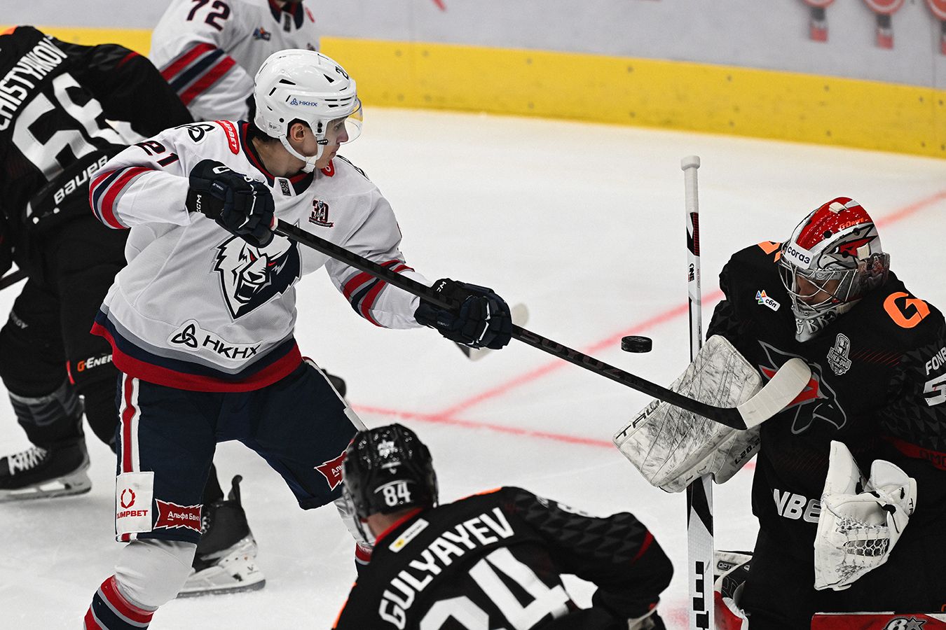 Шайбы: 0:1 — Белозеров (5, ГБ), 1:1 — Прохоркин (10, ГБ), 2:1 — Лажуа (15, ГБ), 2:2 — Хоружев (44, ГБ), 3:2 — Окулов (55), 4:2 — Фьоре (59, ПВ).