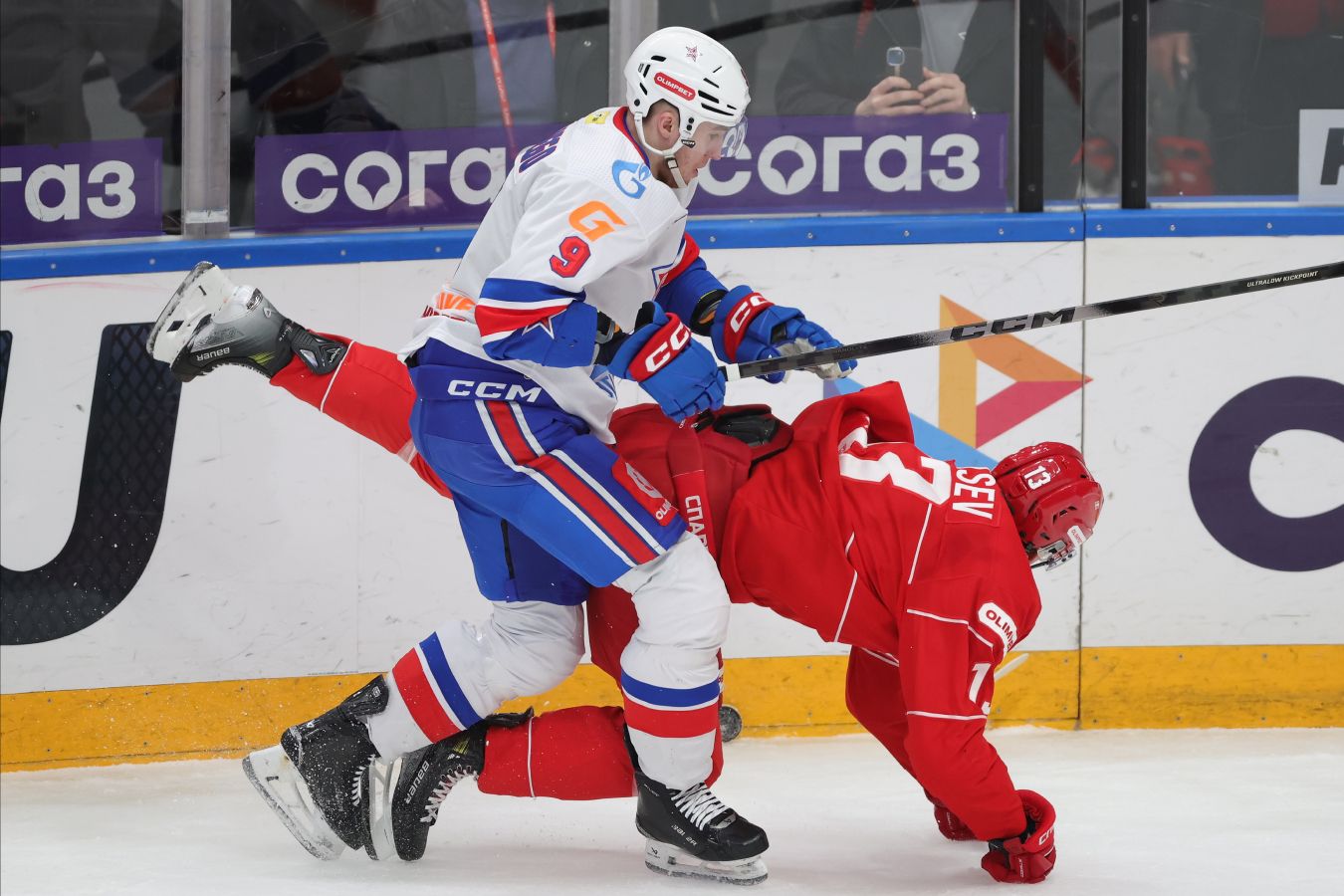 Московский "Спартак" обыграл СКА в матче регулярного чемпионата НХЛ. Итоговый счет — 4:0.