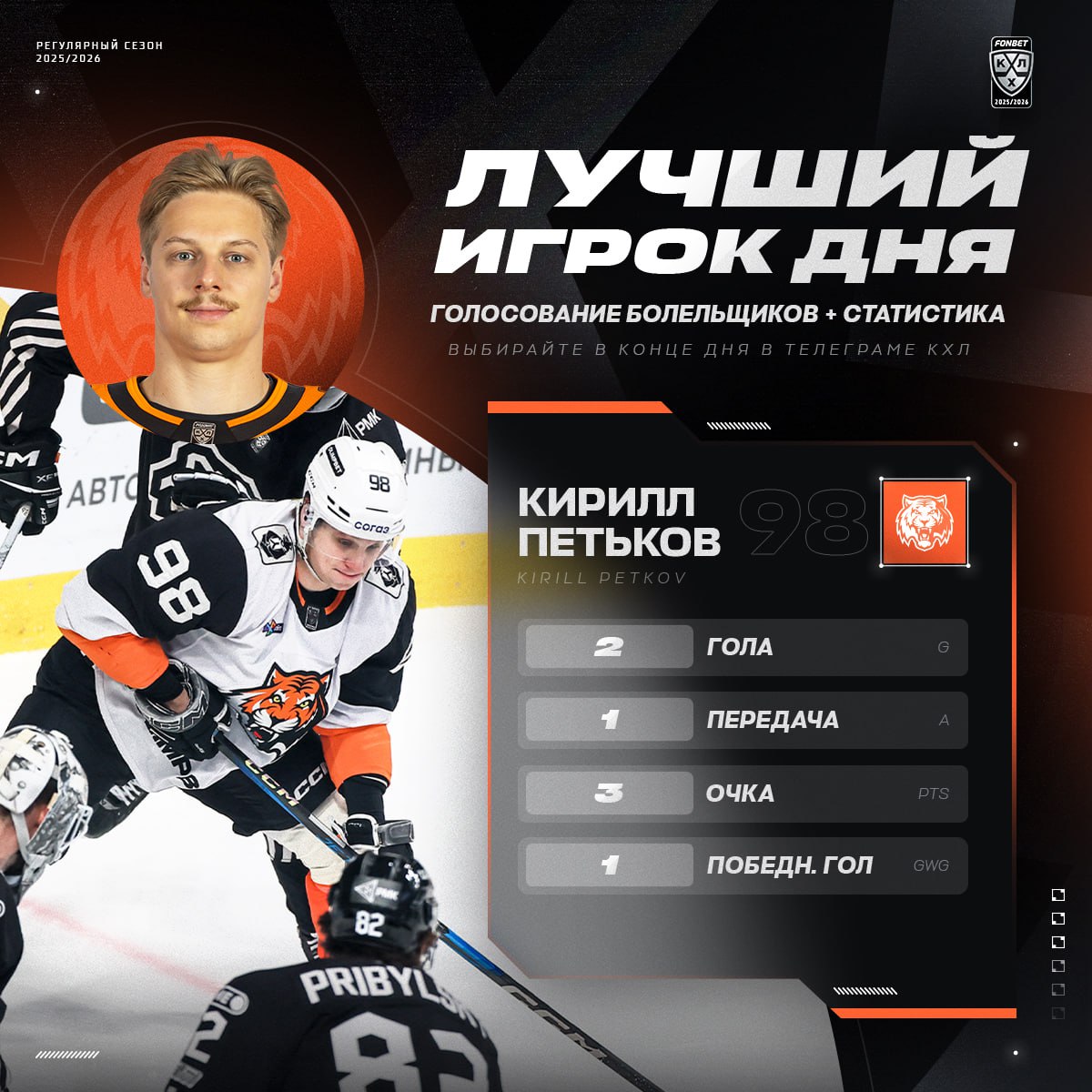 Российский нападающий "Амура" Кирилл Петьков стал лучшим игроком дня в КХЛ.