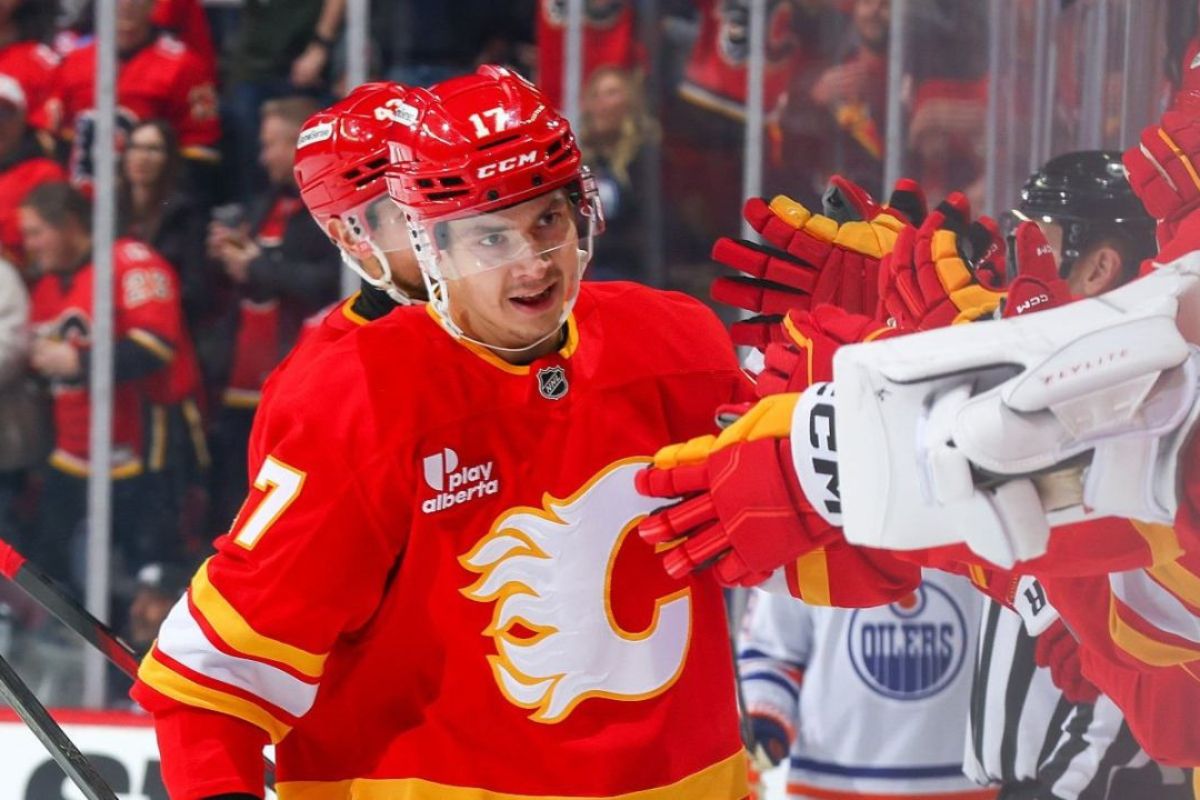 27-летний белорусский форвард "Калгари" Егор Шарангович вышел в третьем звене вместе с Джоэлем Фараби и Коннором Зари.