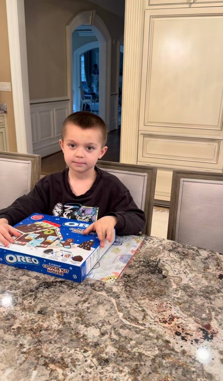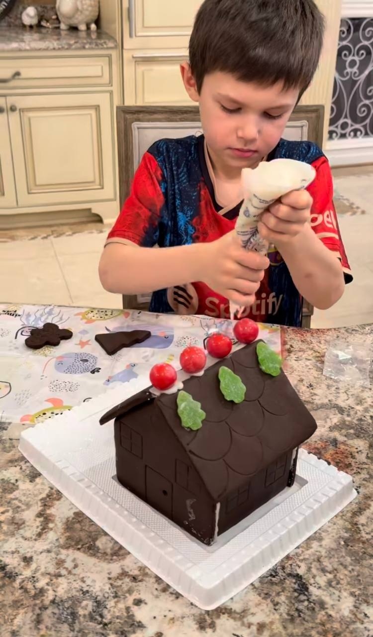 Вечером, в канун Рождества, супруга хоккеиста поделилась кадрами того, как их дети Илья и Сергей лепят пряничный домик.