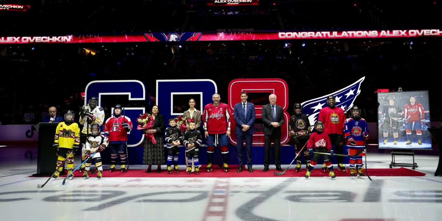 Перед началом хоккейного матча прошла торжественная церемония, посвященная Александру Овечкину, по случаю достижения им рубежей 900 голов за карьеру в НХЛ и 1500 матчей за одну команду. В мероприятии приняли участие самые близкие люди российского нападающего: его мать, супруга и двое сыновей.