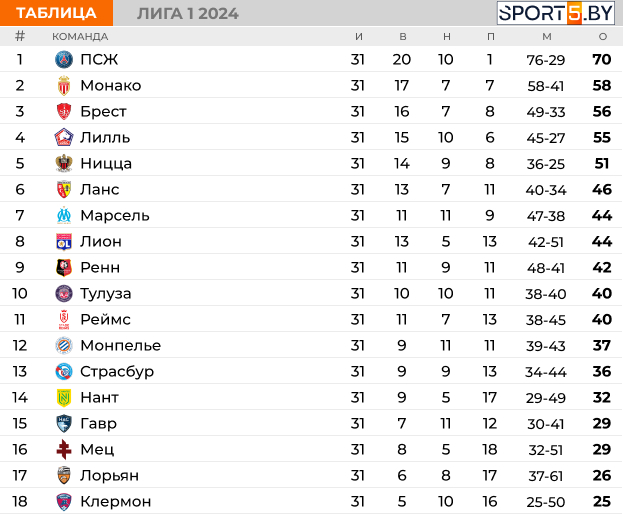 Завершился 31-й тур во французской Лиге 1.