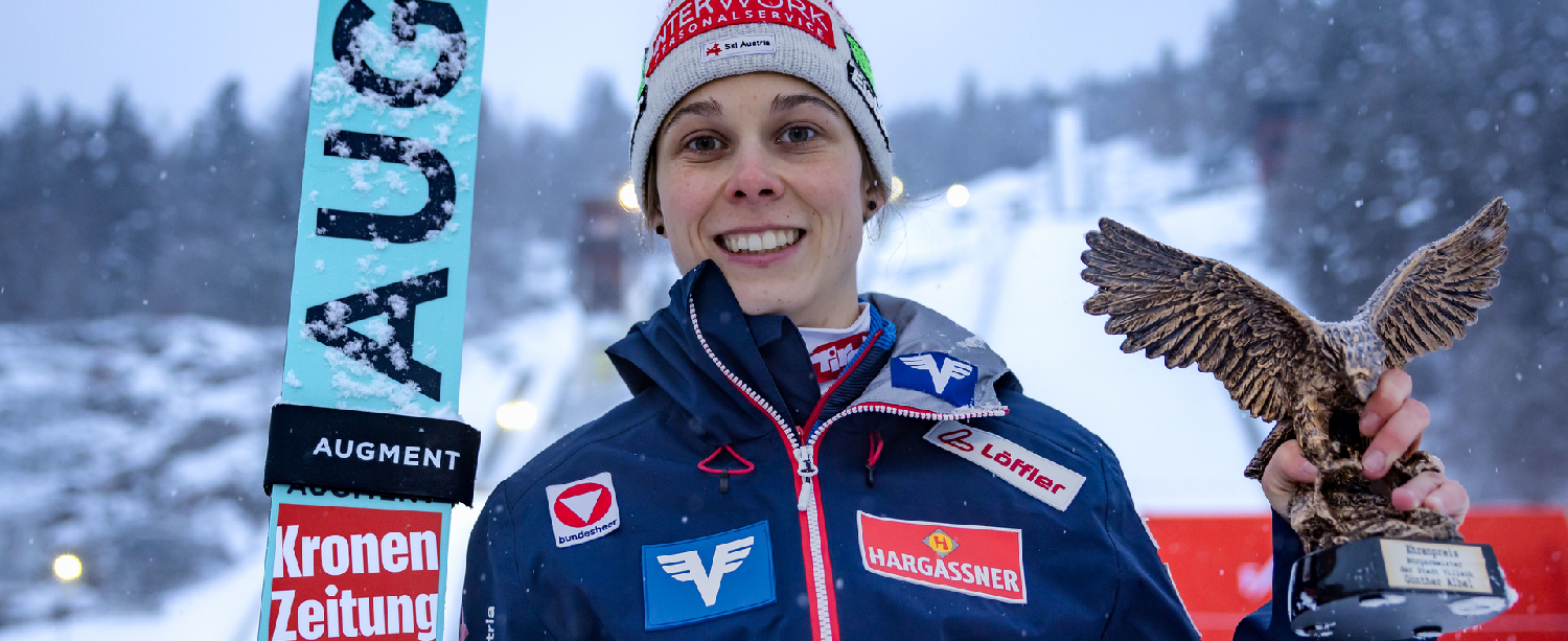 Сама Эдер выступала на Кубке мира с 2018 года, одержала две победы на этапах. В 2025 году завоевала серебро командного турнира чемпионата мира.