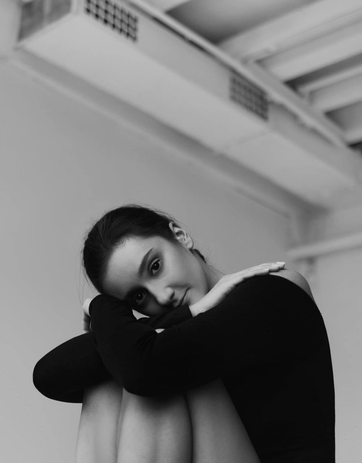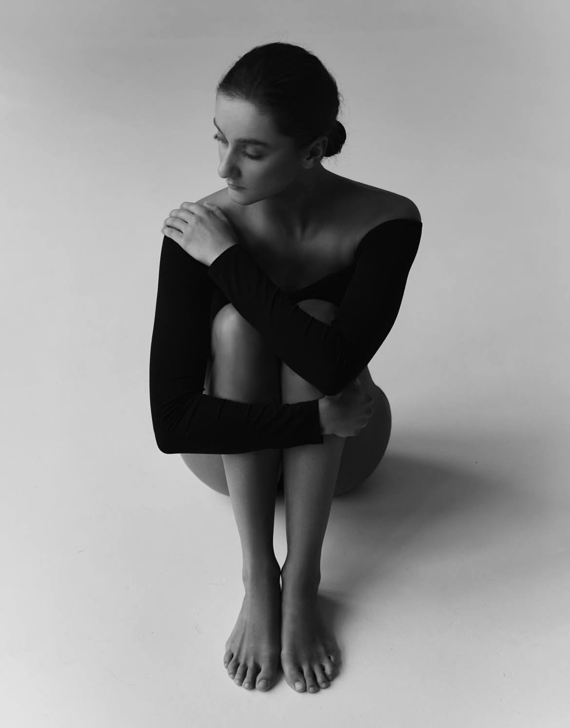 Все фотографии спортсменки черно-белые. Образ кажется очень минималистичным и оттого нежным и аккуратным.