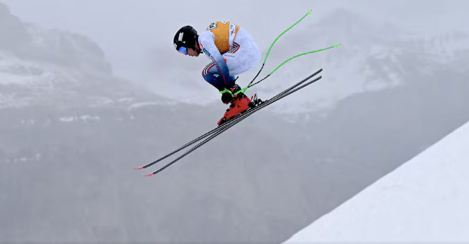 Норвежский горнолыжник Фредрик Мёллер не справился с управлением и был вынесен с трассы на носилках.