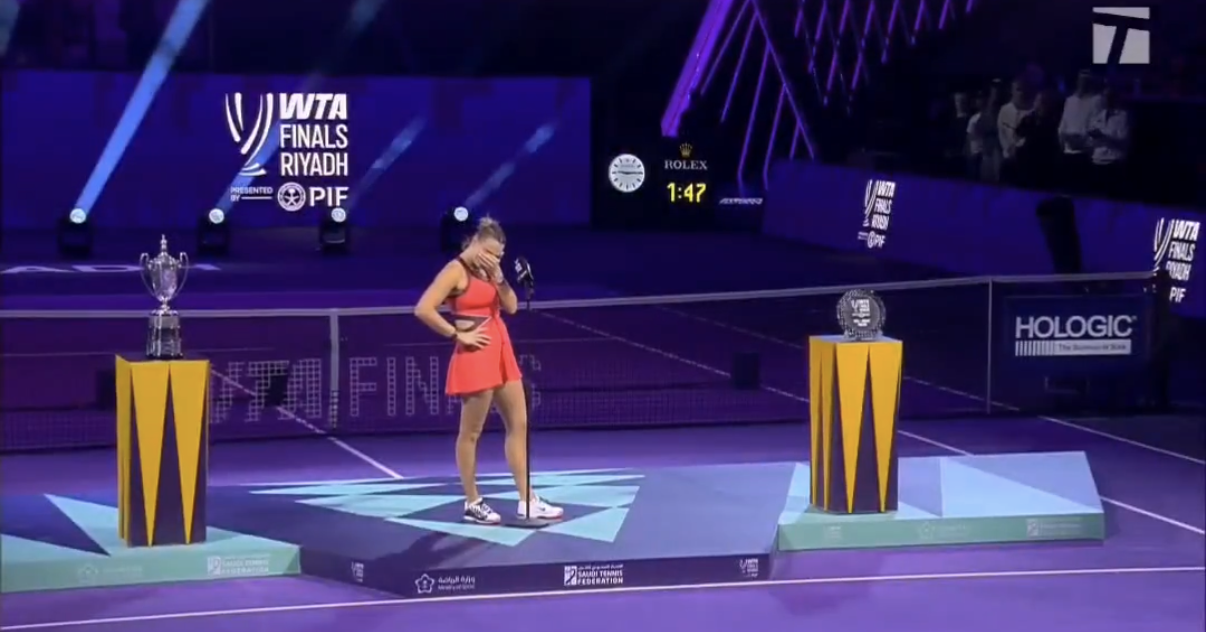 Соболенко расплакалась во время речи на церемонии награждения. Она во второй раз в карьере проиграла в финале Итогового турнира, также потерпела поражение в 2022 году от француженки Каролин Гарсии.