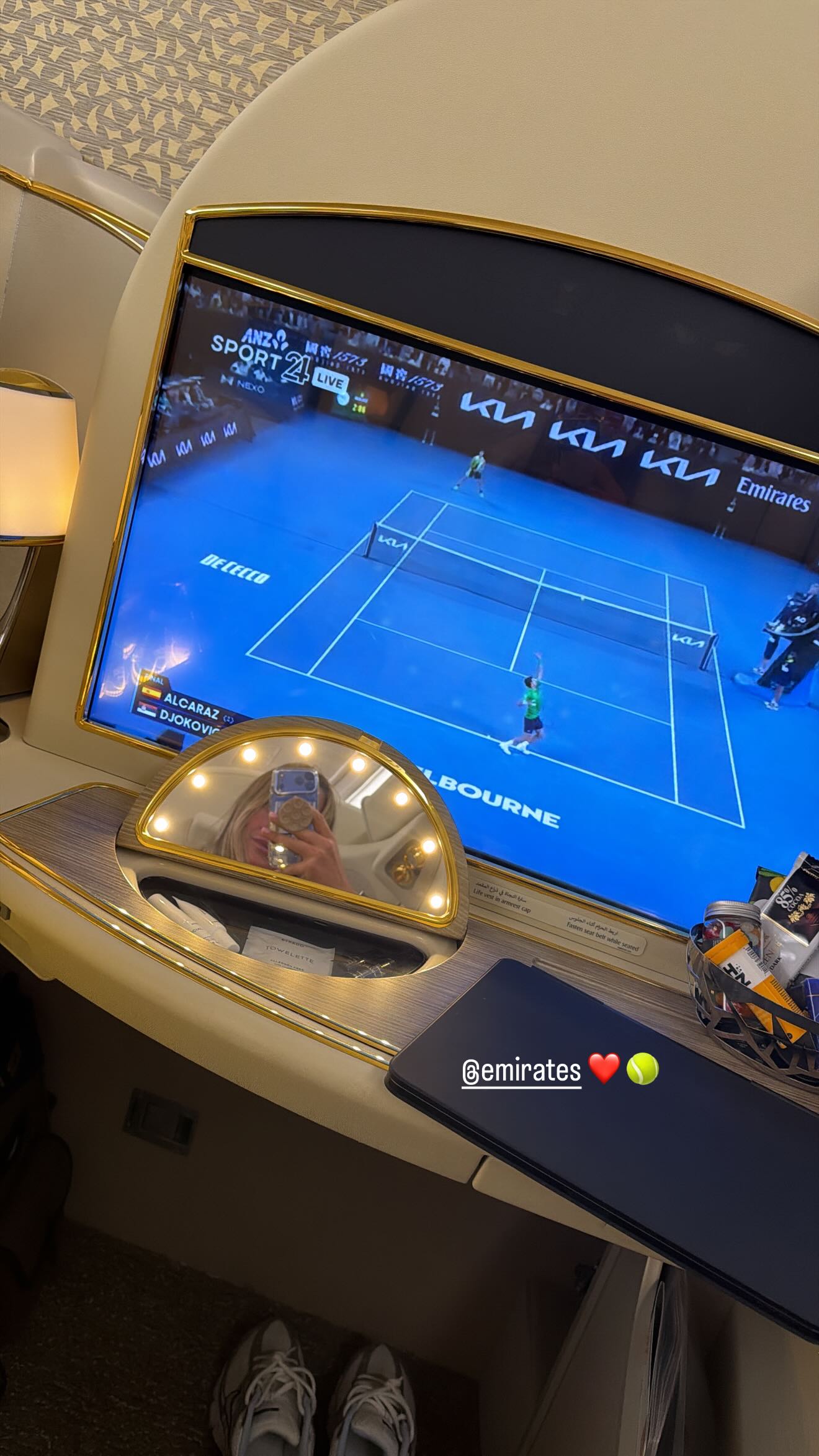 Недавно белоруска стала амбассадором авиакомпании Emirates. За финалом белорусская теннисистка с комфортом наблюдает прямо на борту самолета.