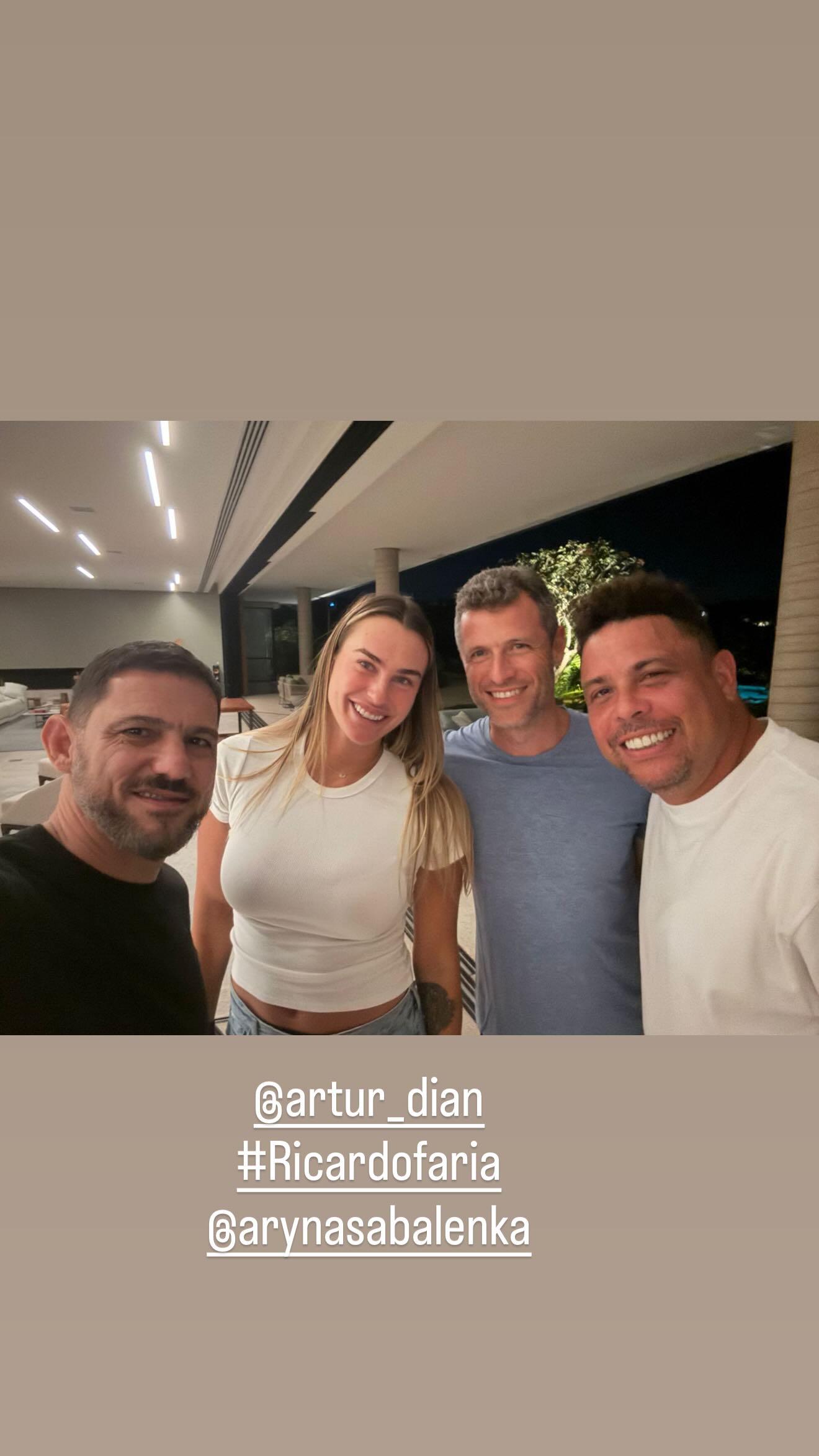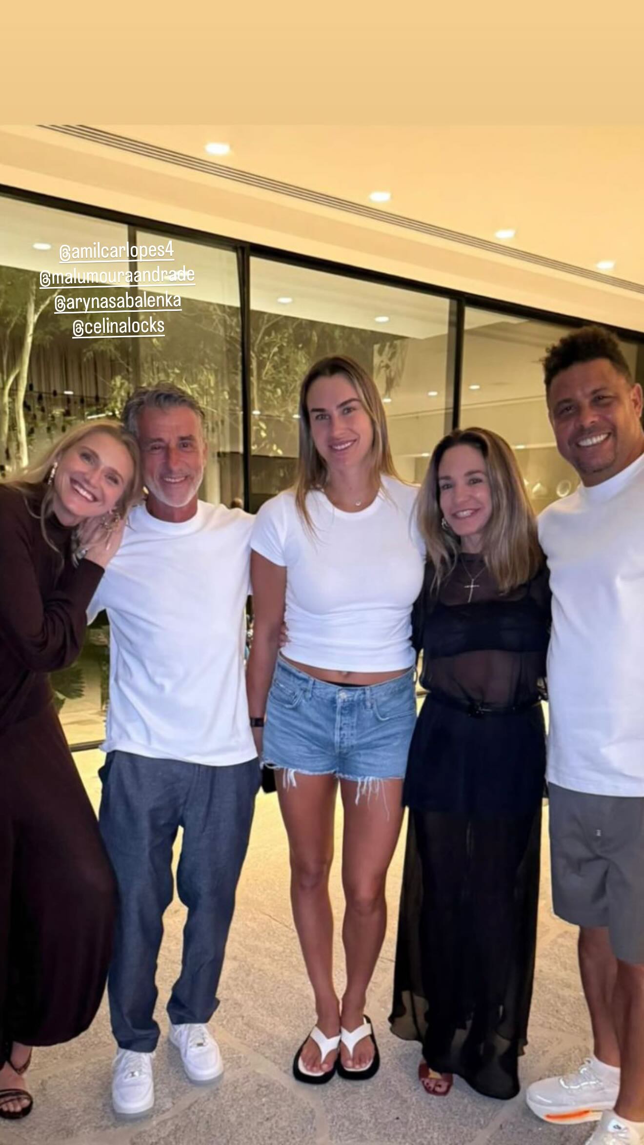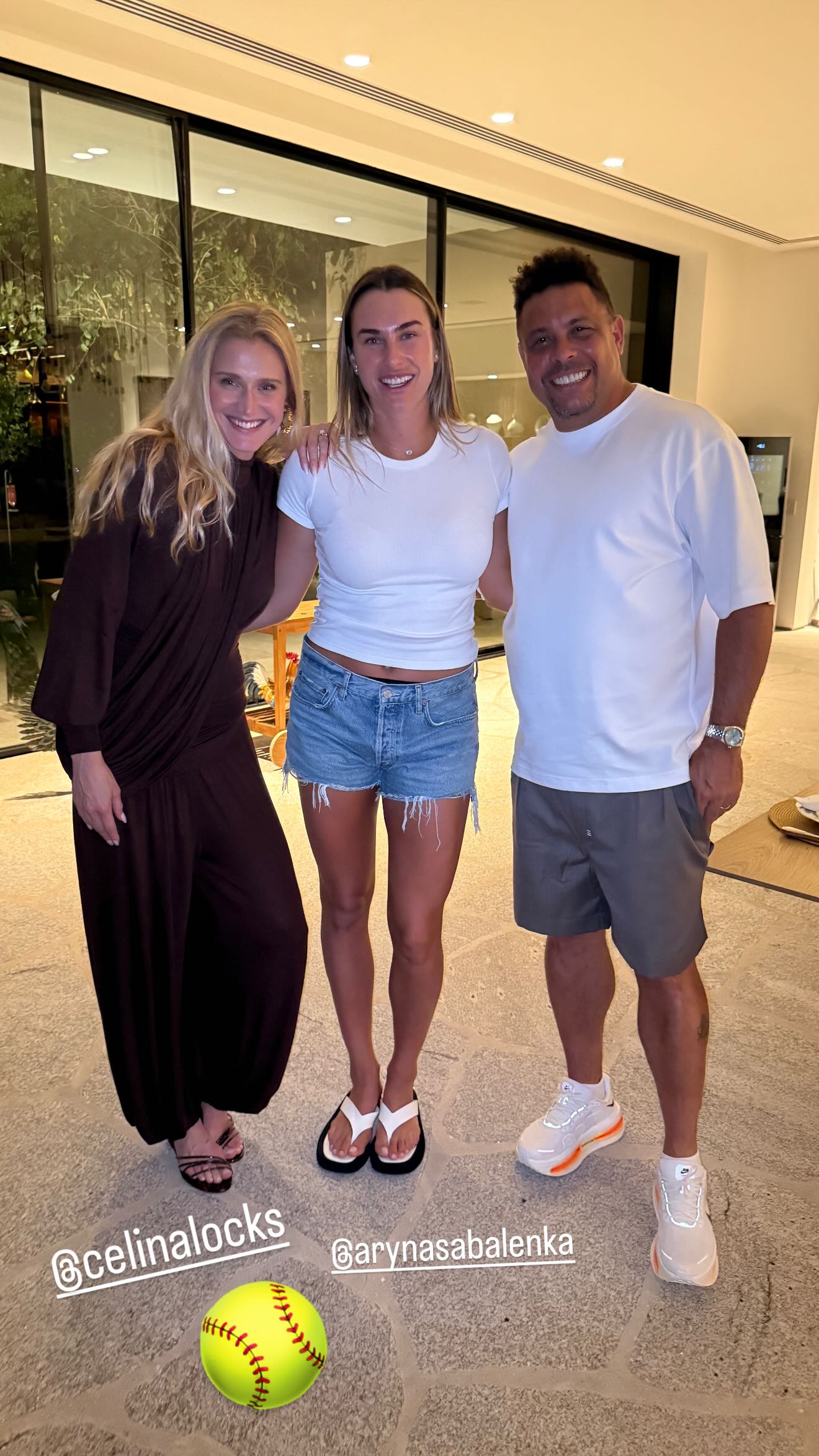 Первая ракетка мира белоруска Арина Соболенко встретилась с бразильским футболистом Роналдо и его женой моделью Селиной Локс.