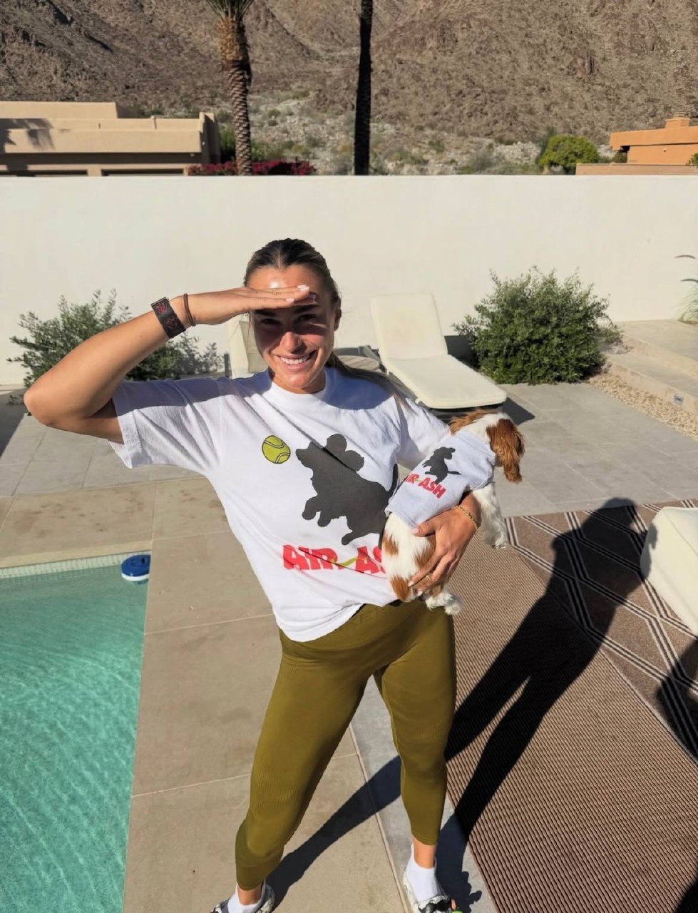 Перед турниром в Индиан-Уэллсе в семье Арины и Георгиоса случилось пополнение — у них появилась собака, которую назвали Эш.