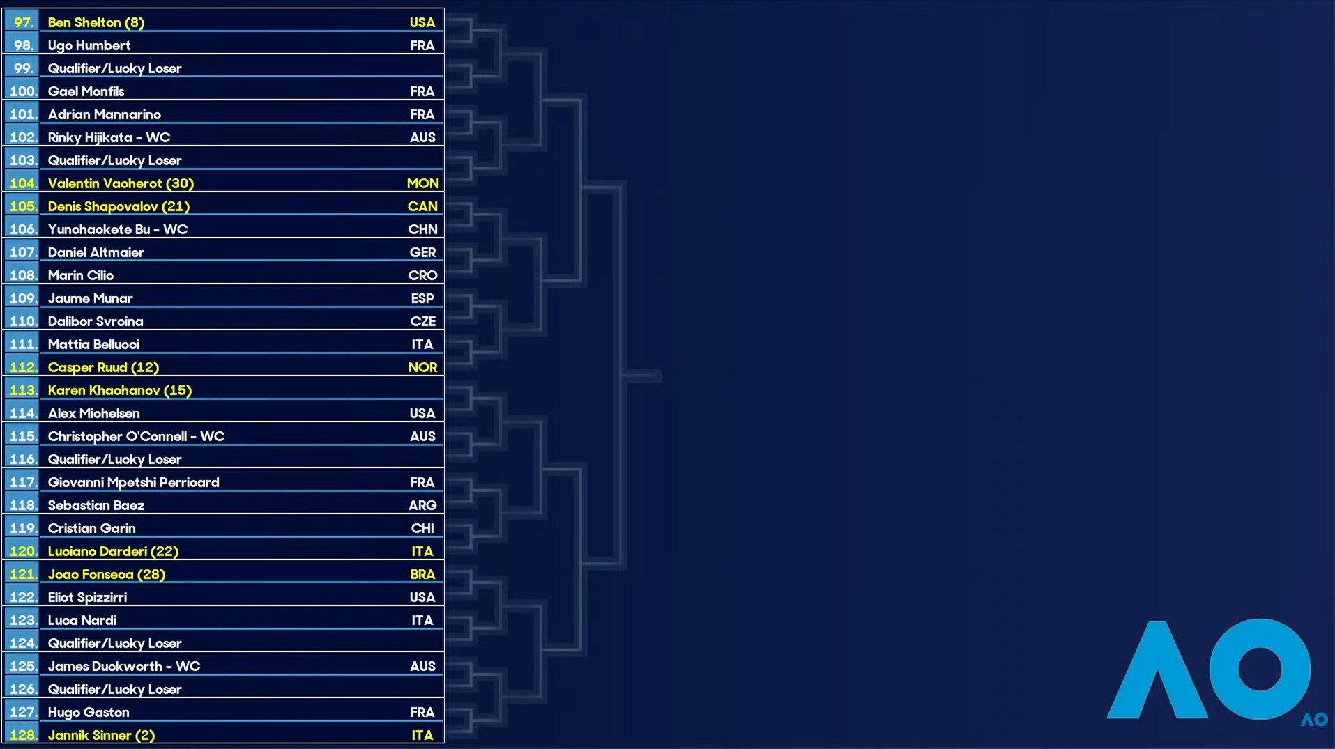 Завершилась жеребьевка мужской сетки Australian Open-2026.