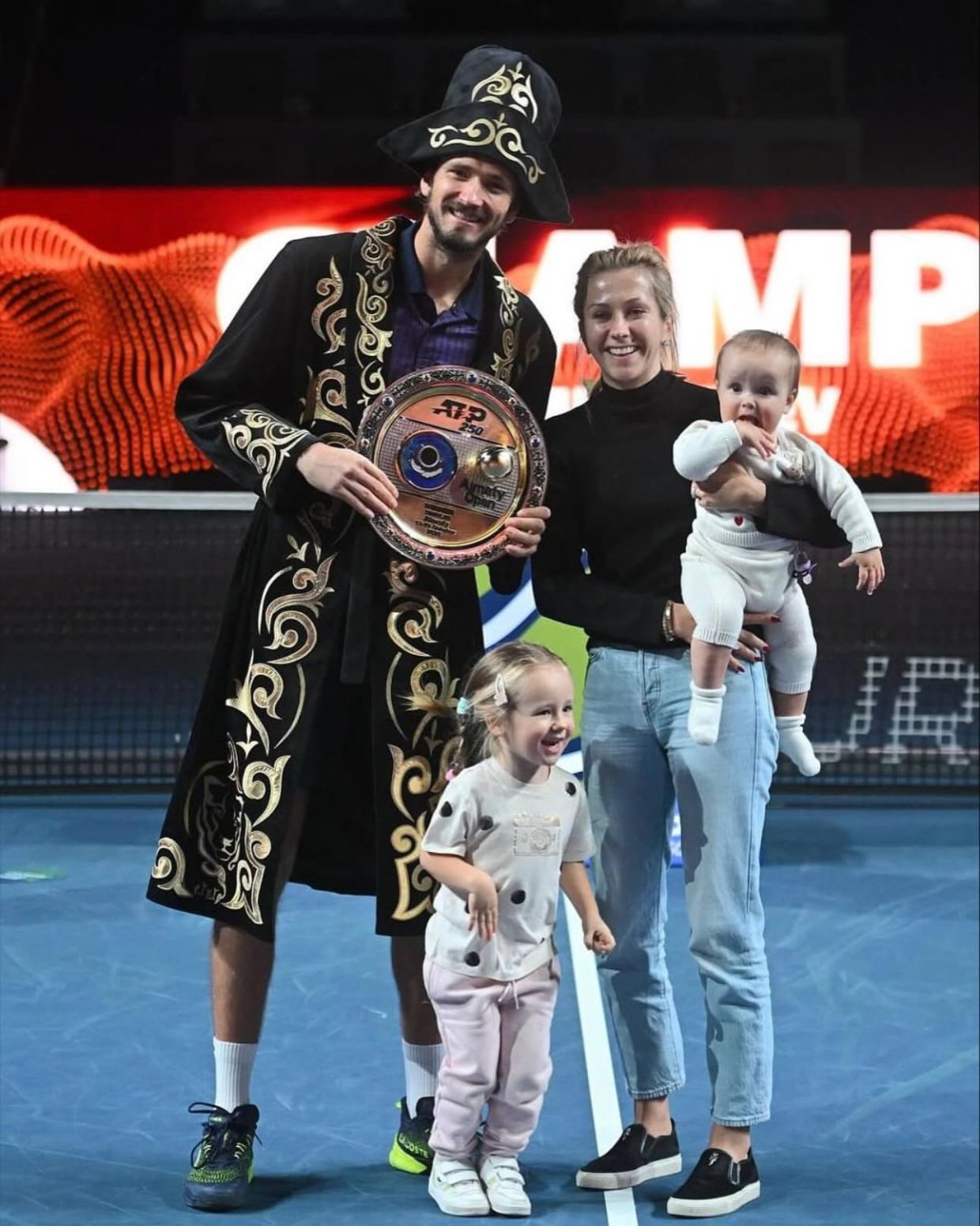 Чемпион US Open — 2021, 14-я ракетка мира российский теннисист Даниил Медведев опубликовал пост по итогам турнира в Алма-Ате (Казахстан). Спортсмен поделился семейными фото в праздничном костюме.