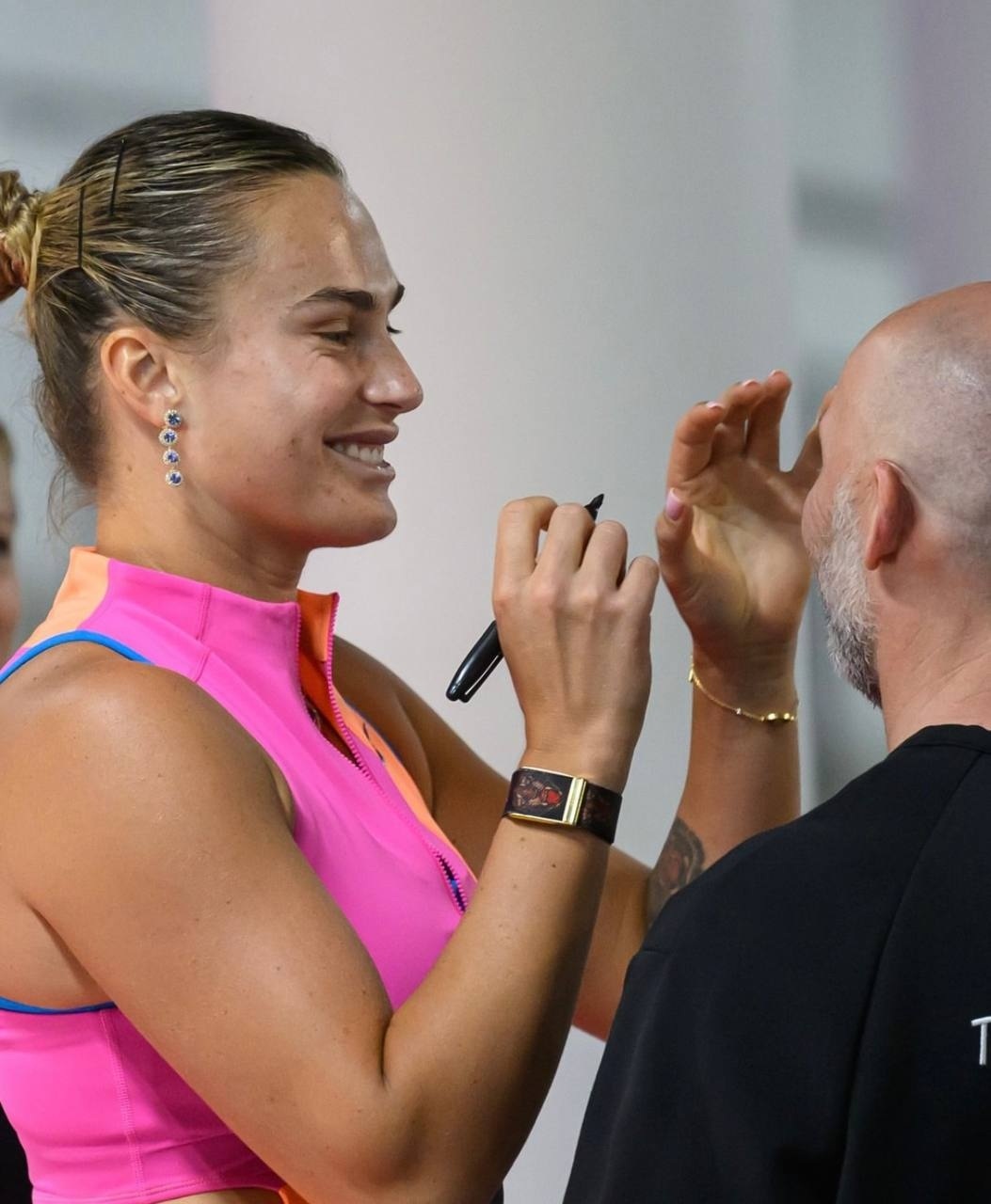 Встреча закончилась победой Соболенко в двух сетах — 6:3, 6:0.