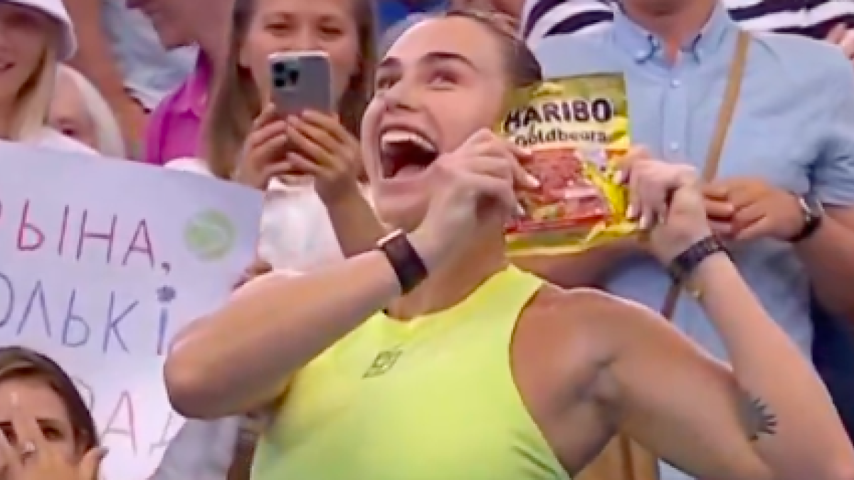 Первая ракетка мира белоруска Арина Соболенко решила сохранить особенный подарок от болельщицы в секрете. Судя по картинке, ей подарили любимое лакомство — желатиновых мишек.