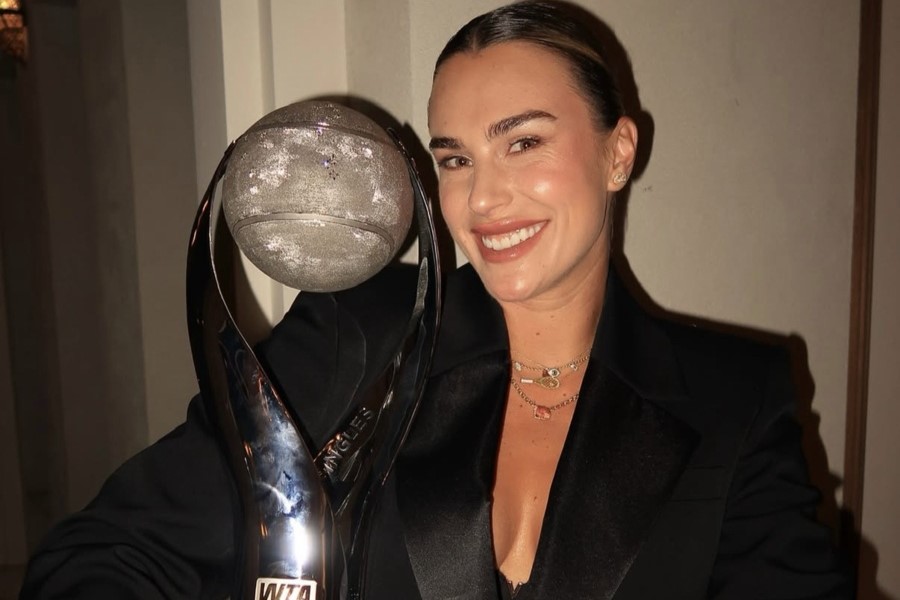Белорусская теннисистка, первая ракетка мира Арина Соболенко опубликовала новые фото с трофеем за окончание сезона-2025 в статусе первой ракетки мира.