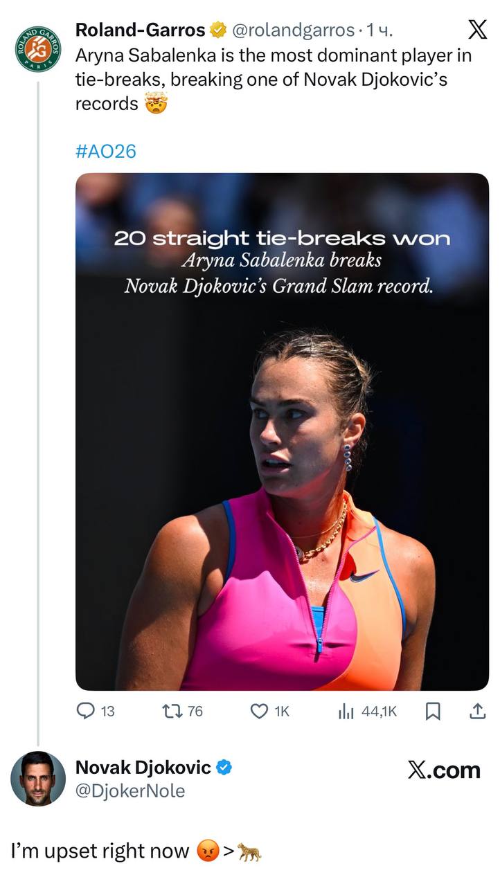 Сам Джокович с иронией отреагировал на это событие, написав в социальных сетях: "Я сейчас расстроен".