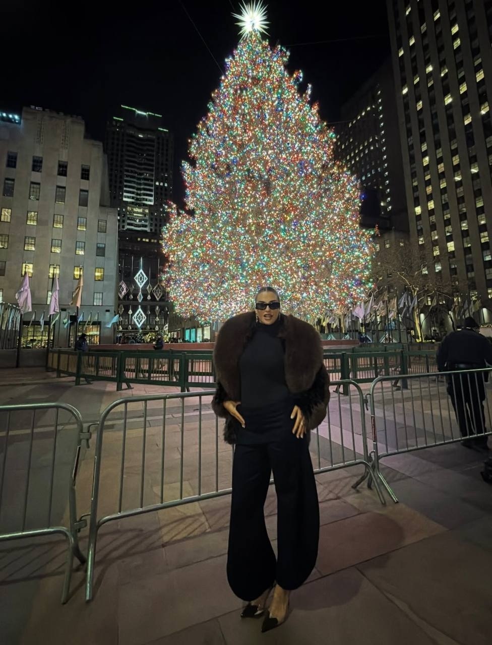 А также не забыла и снять забавное видео на фоне Рождественской ёлки в Рокфеллер-центре, которым поделилась в своем Instagram.