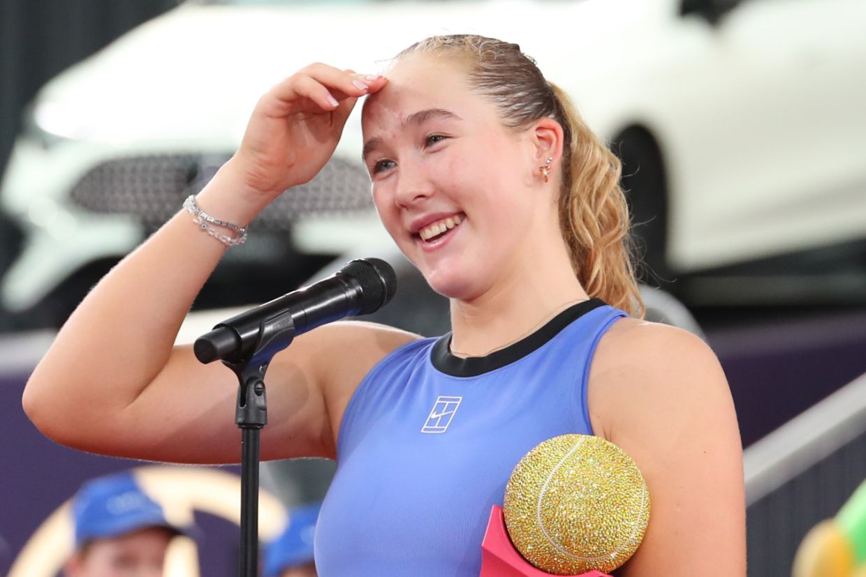 10-я ракетка мира российская теннисистка Мирра Андреева сфотографировалась с трофеем турнира в WTA-500 в Линце.