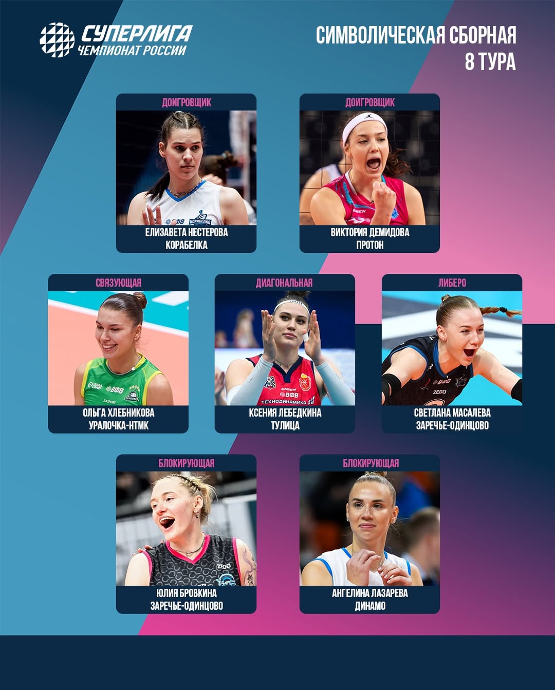 Нападающая "Тулицы" и сборной Беларуси Ксения Лебедкина попала в символическую сборную 8-го тура российской Суперлиги по волейболу.