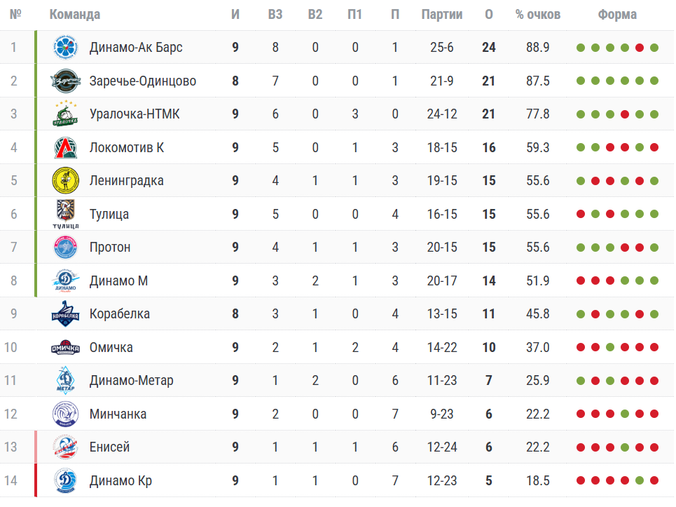 После девяти игр подопечные Сергея Чесновицкого занимают 12-ю строчку Суперлиги. На счету белорусского клуба 6 набранных очков.